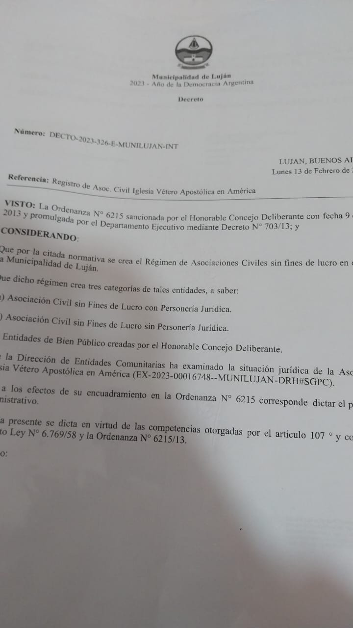 El 13 de febrero de 2023, fue reconocida como Asociación Civil sin Fines de Lucros la Iglesia Vetero Apostólica en América.